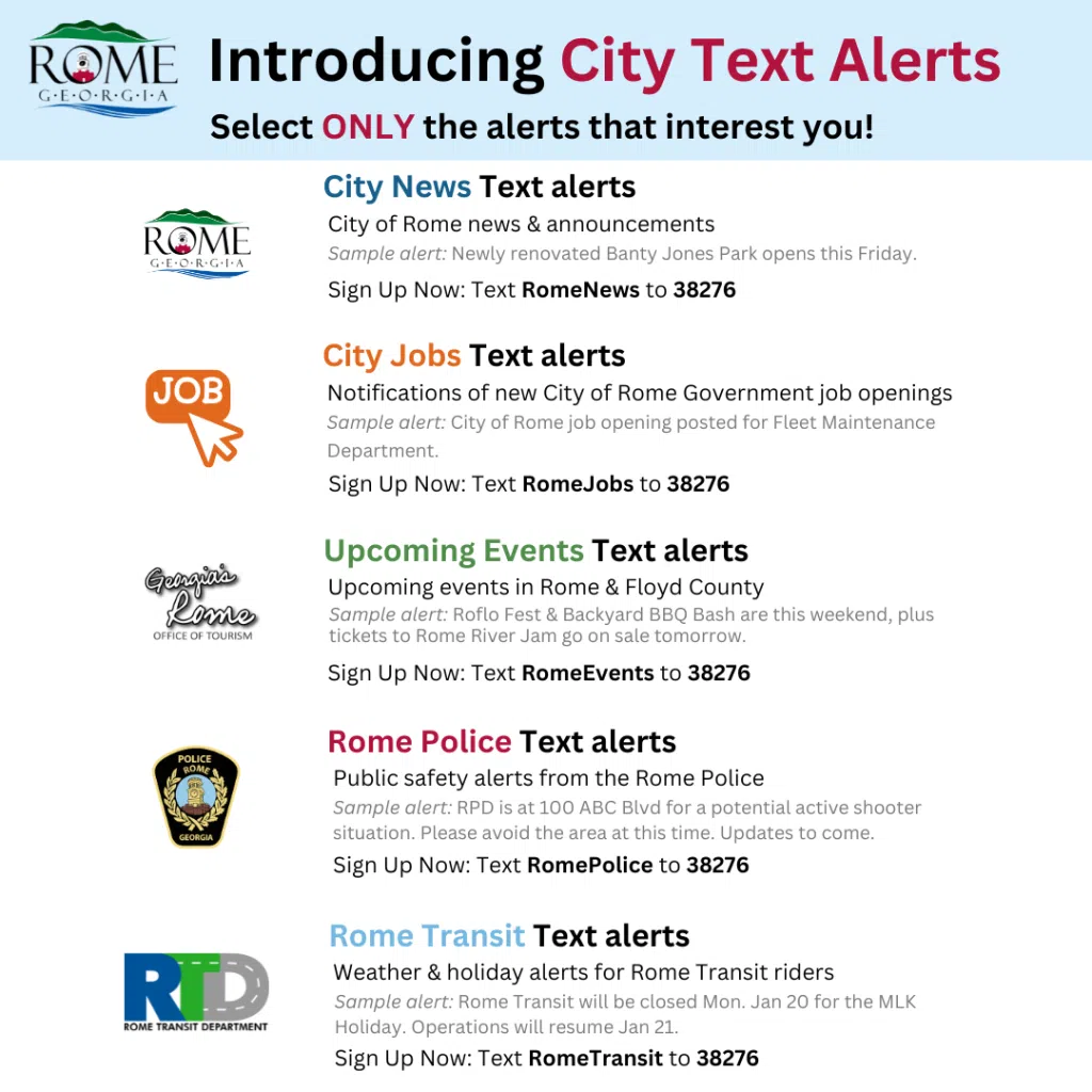 The City of Rome has announced the launch of its new text messaging platform designed to help residents stay informed and engaged with the latest updates from the city.