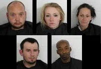 The execution of a search warrant at a residence on Trove Drive ended with the arrest of five people on drug charges.