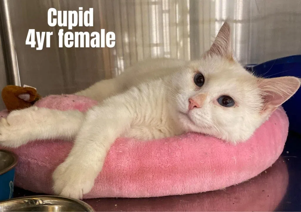 For more information about adopting Cupid, please contact us today by clicking here to email us. To find more adoptable pets, click here to follow us on Facebook, or click here to go to our website. Let’s make sure this delightful girl finds her purrfect match!