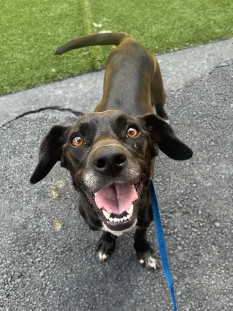 Fresca is a sweet and loving girl looking for her forever family! Fresca is a middle age (~5yr) Lab/Mix, who is the perfect size – weighing just 30lbs! She has a shiny black coat with brown hues and expressive ears that flop over and stand up straight! Fresca is dog friendly, but does start off timid and cautious. Once she warms up, she is ready to play! She is crate trained, is working on her potty training, and walks well on leash. Walking by moving cars does make her nervous, so she’s working on gaining confidence with her foster family. Fresca has a medium energy level, and just enjoys spending time with her people. She’s very loving and would make a wonderful companion for a retired person(s), or family who is looking for a loyal companion!