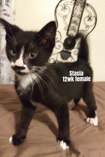 This energetic young lady is Stasia. Stasia is full of sass, a 3-month-old female terrier/lab domestic short hairmix. When she’s not investigating her surroundings, she’s busy racing around with her super speed. This sweet girl eventually tires out and loves snuggling with her family. She will need training to become her best self and thrive in her new home.