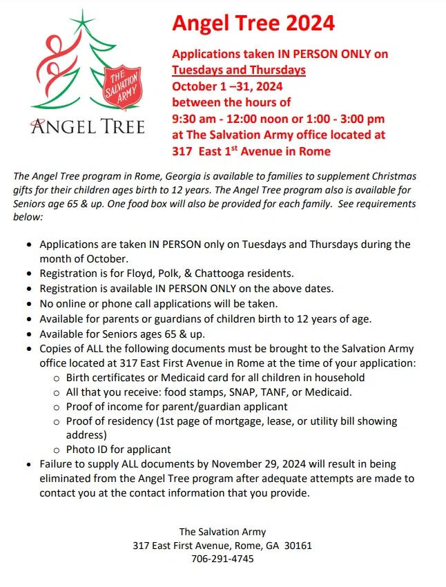 Additional questions can be directed to The Salvation Army at 706-291-4745.