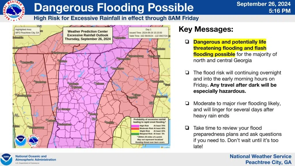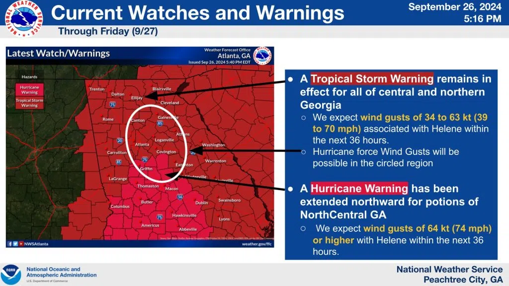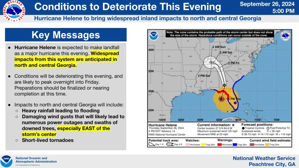 Hurricane Helene is forecast to make landfall as a major hurricane later this evening. Conditions will deteriorate across north and central Georgia this evening and last through Friday.
