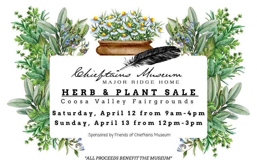 The Chieftains Museum/Major Ridge Home’s annual Herb and Plant Sale takes place at the Coosa Valley Fairgrounds on April 12-13, 2025, with an exclusive Members-Only Preview Sale on April 11.
