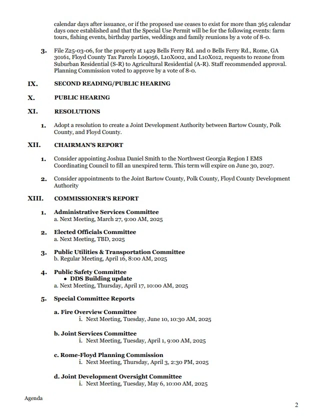 A resolution to create a joint development authority between Bartow, Polk, and Floyd County is on the agenda for Tuesday’s Floyd County Commission meeting.