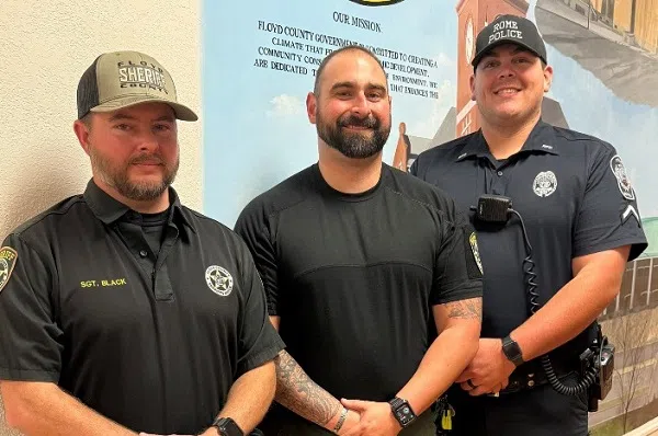 Two Floyd County Sheriff’s Deputies and one Rome Police Officer were honored during Tuesday’s Floyd County Commission meeting for their actions in rendering aid to citizens in need during a couple of incidents last month.
