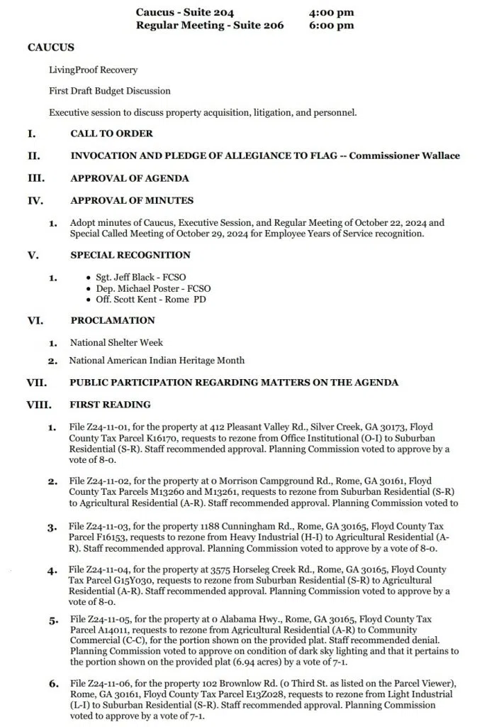 Floyd County Commissioners will discuss the first draft of the budget during their Tuesday caucus session.