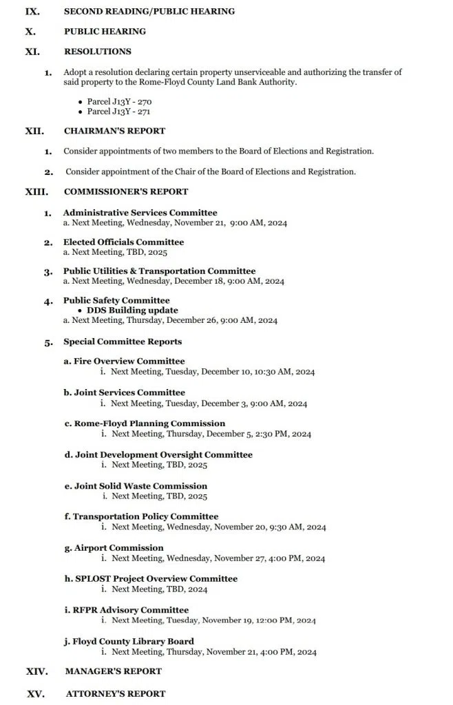 During the regular meeting at 6, the commission is expected to make appointments to the Floyd County Board of Elections.