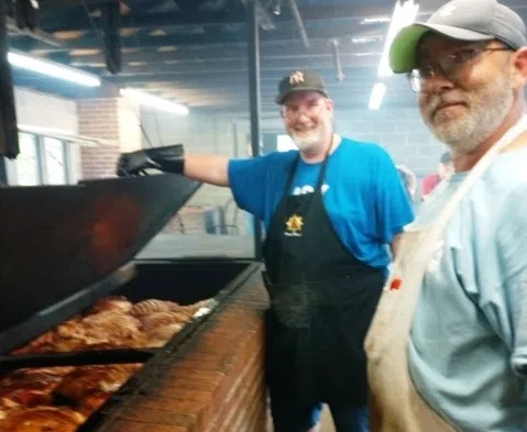The Knights are preparing roughly 700 pounds of pork, 200 pounds of beef, 150 half chickens, 275 half racks of ribs, 550 quarts of Brunswick stew, and 150 quarts of baked beans.