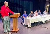 Tuesday, July 18, 2023–10:04 p.m.-David Crowder, WRGA News-Pictured from left to right: Moderator Doug Walker, Rome Mayor Sundai Stevenson, Rome Police Chief Denise Downer-McKinney, Rome High Pr...